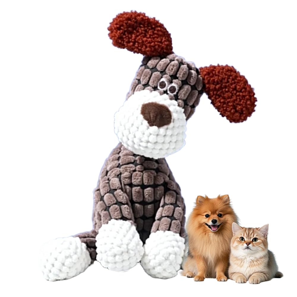 - SQUEAK FOR JOY: This plush dog toy has five squeakers inside to provide non-stop entertainment, keeping your puppy engaged during playtime. Small toy measures about 9" tall x 5" wide x 3" deep