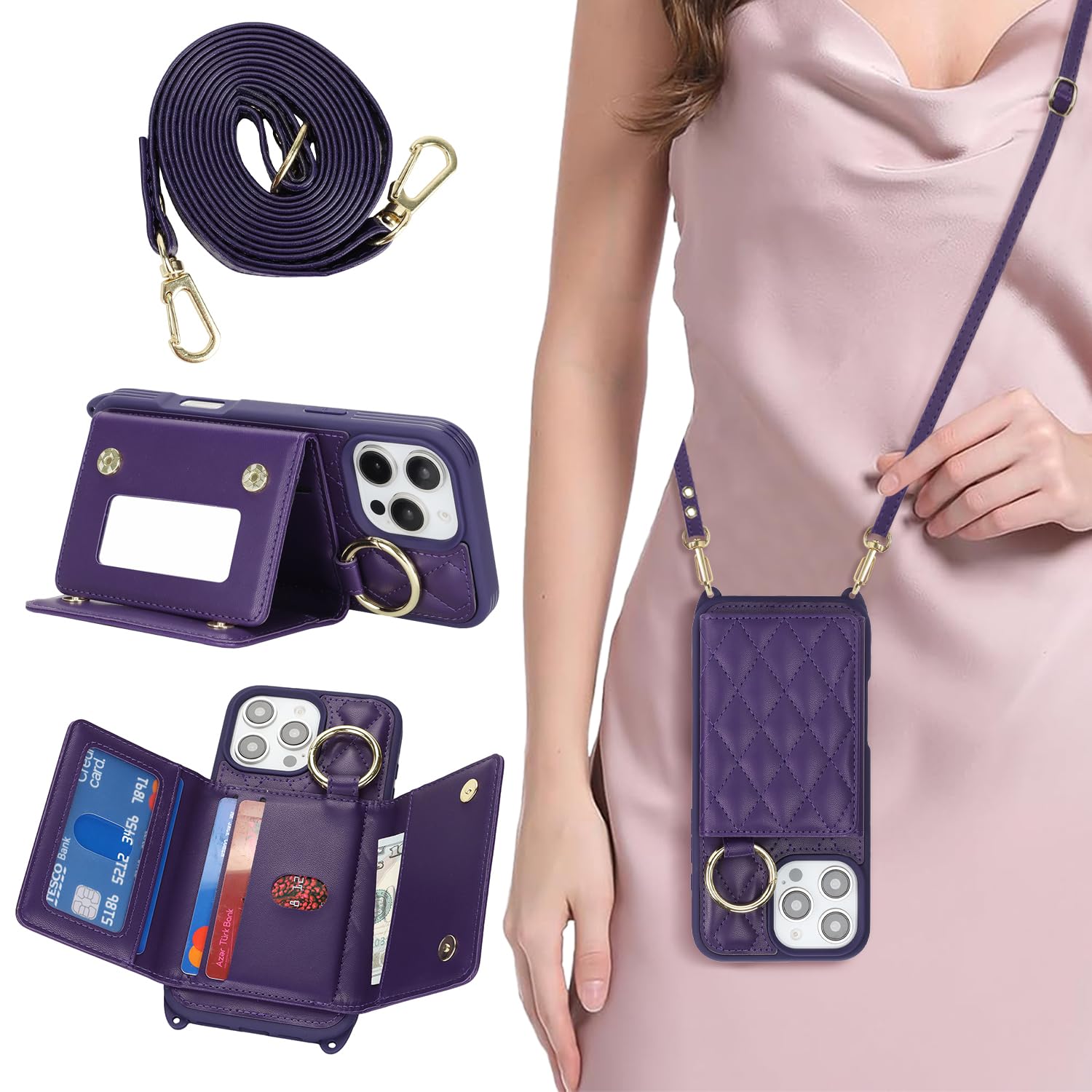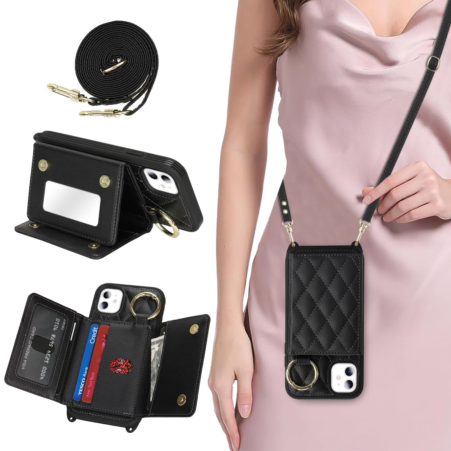 - 【Package includes】: We will send the phone case with 1 piece tempered glass screen protector + 1 detachable wrist strap + 1 detachable crossbody strap. It would be a nice gift for your lover, your family and your friends.